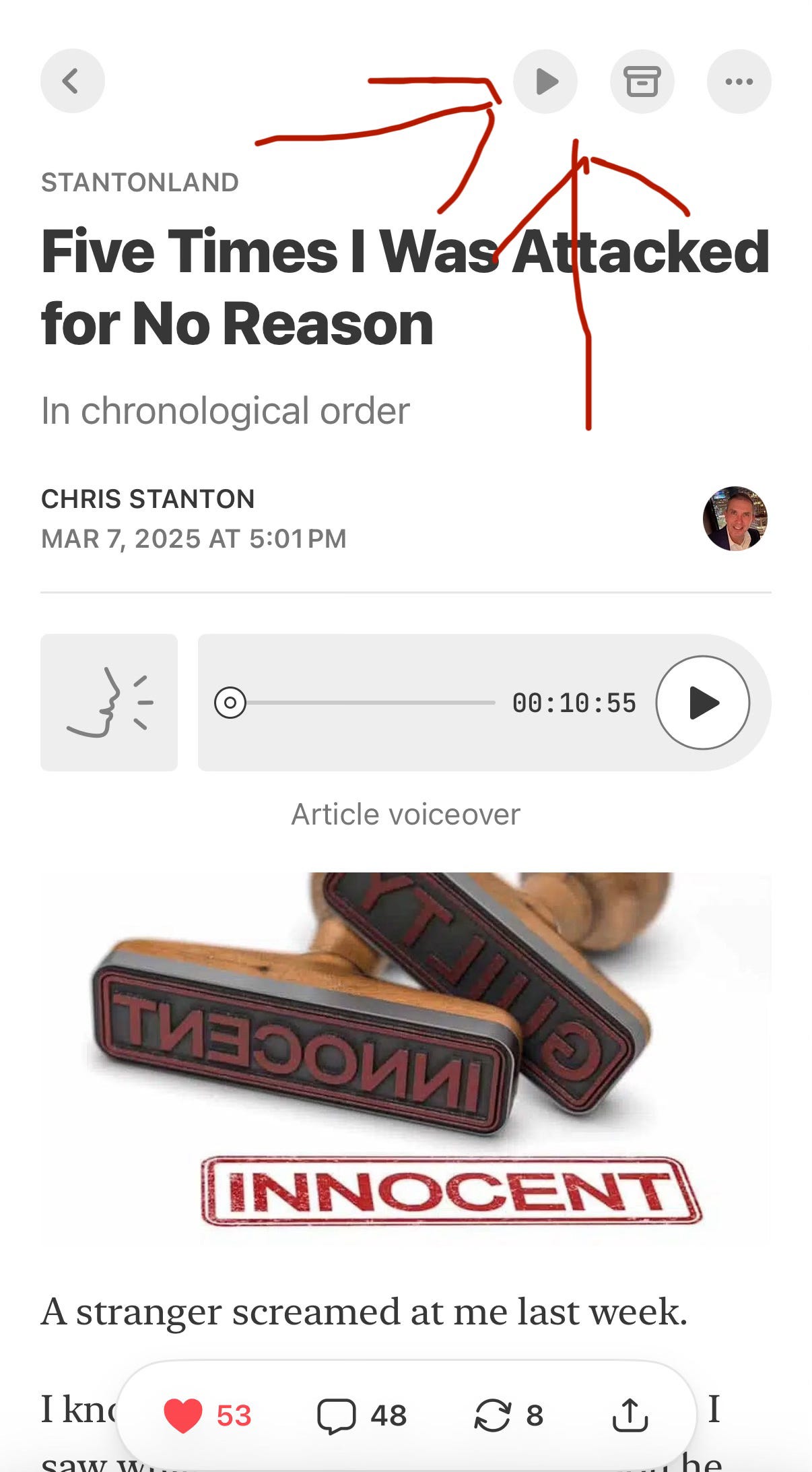 Another cool thing about reading this on the Substack app or at Substack.com is you can now listen to a post if you’d rather. I’ve started doing this in the car and on walks and it’s really slick. Just hit the play button at the top right of any post (Check out Chris Stanton’s hilarious publication, Stantonland, while you’re at it).