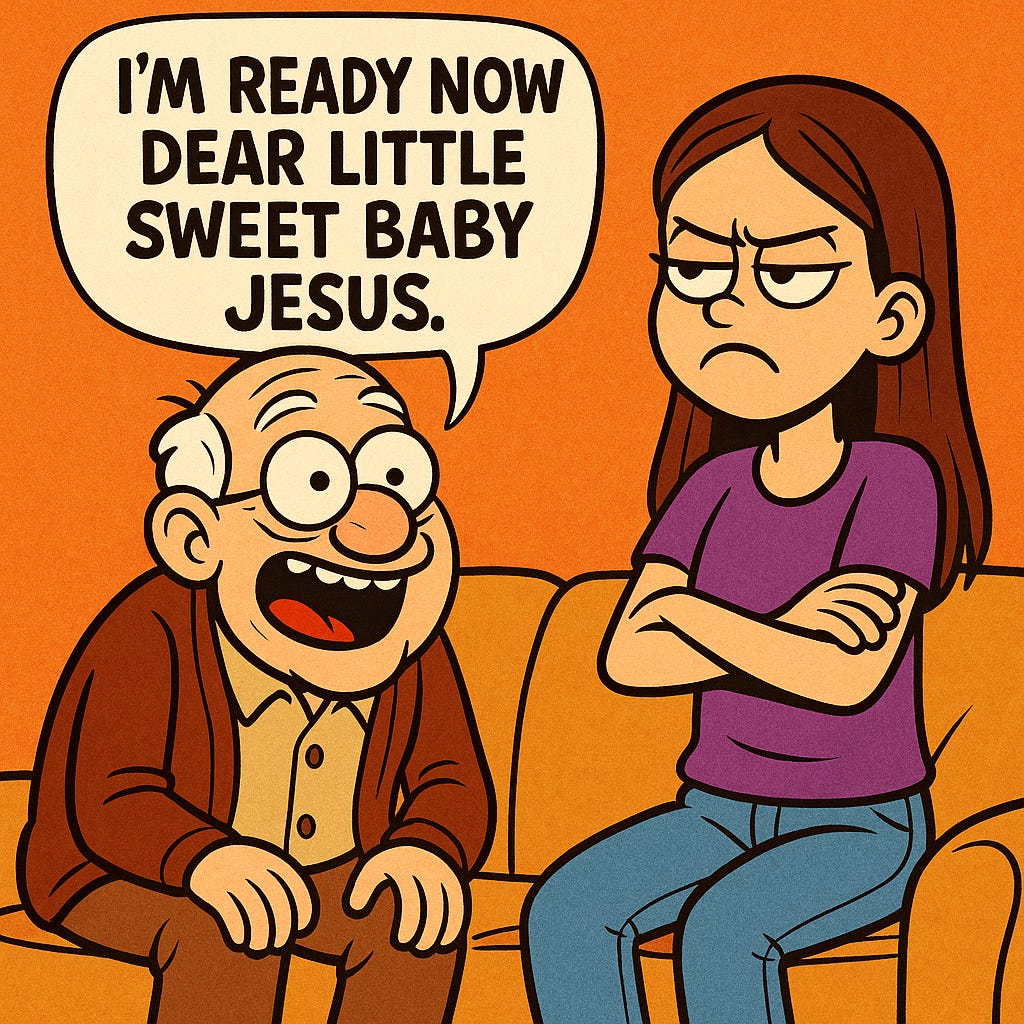 Maybe he will even be lucky enough to bask in the glory of grandchildren. Who will become moody and entitled teenagers just in time for it to be the last thing he experiences before the sweet release of death.