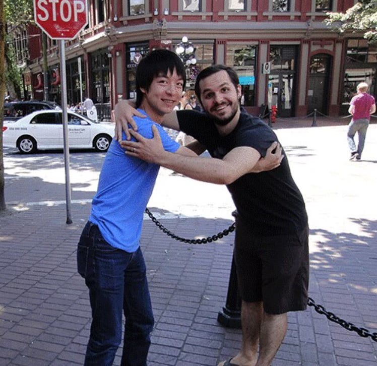 Like, OK cool, we are shaking hands. Ope, nope, heās getting closer. Weāre hugging now I guess.