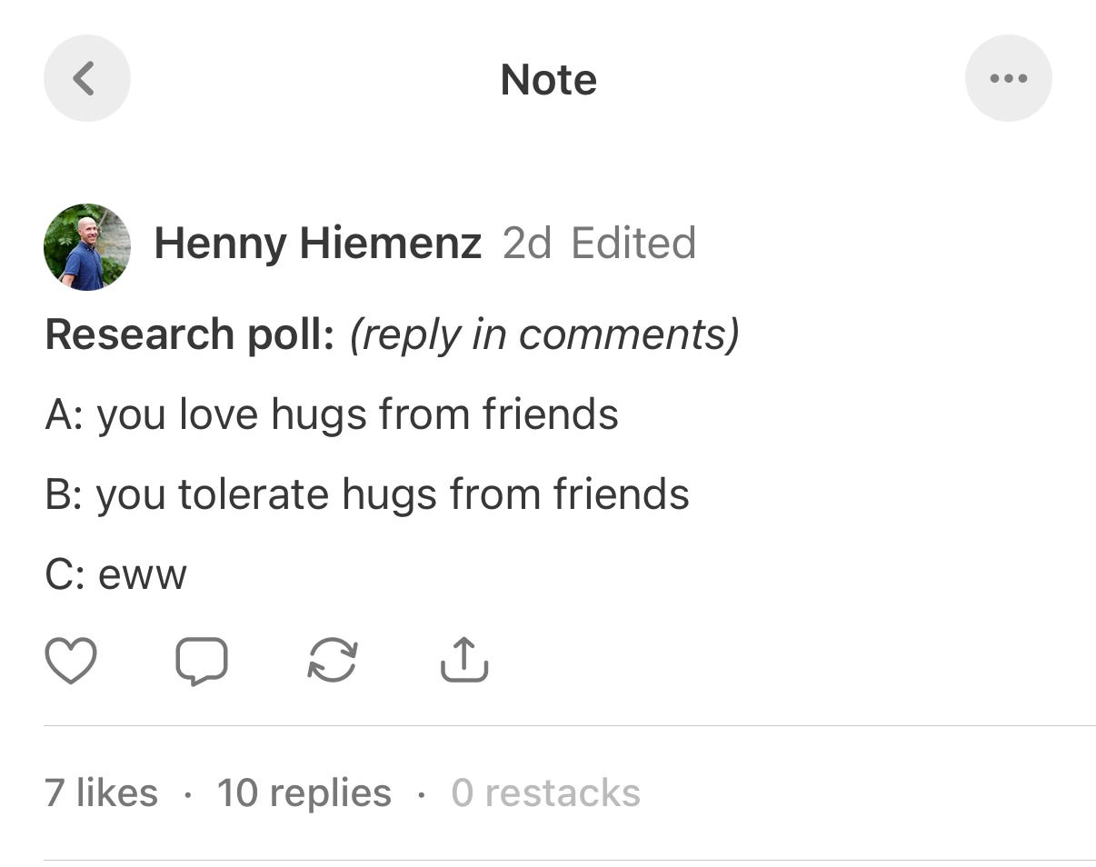 I am truly enjoying doing this. And I have absolutely loved getting to know new people that I consider friends. Online friends, but friends nonetheless. Iāve never had an online friend prior to Substack.