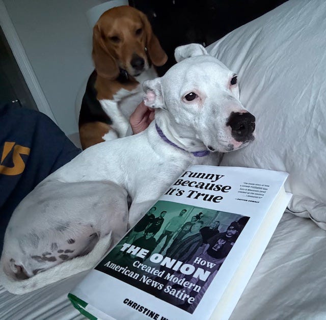 I’m about halfway through Funny Because It’s True: How The Onion Created Modern American News Satire, by Christine Wenc. I was interested in this book for several reasons. First, in the last year or so, it came to my attention that The Onion was developed right here in Wisconsin on the campus of UW-Madison back in the late 80s. Second, I seem to consume a large chunk of my news from satirical sources. And lastly, because one of the main characters in the book is a guy I know. I’m enjoying it very much so far and looking forward to learning how they have continued to survive as the media landscape has changed to digital.
