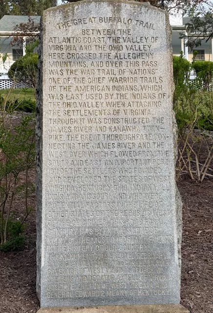 At the top of this marker read the words, “The Great Buffalo Trail.” I read (and re-read) all the rest of the words but had to do some research on my own to make sense of them. In essence, this marker was placed there in 1916 and honors the great buffalo trails that lined this area prior to the white man’s arrival.