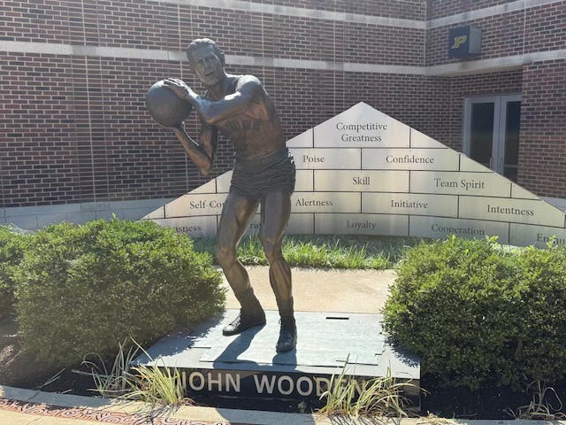 Wooden’s “Pyramid of Success” is well known in coaching circles. I was reminded of it by this outside of the baskeball arena…