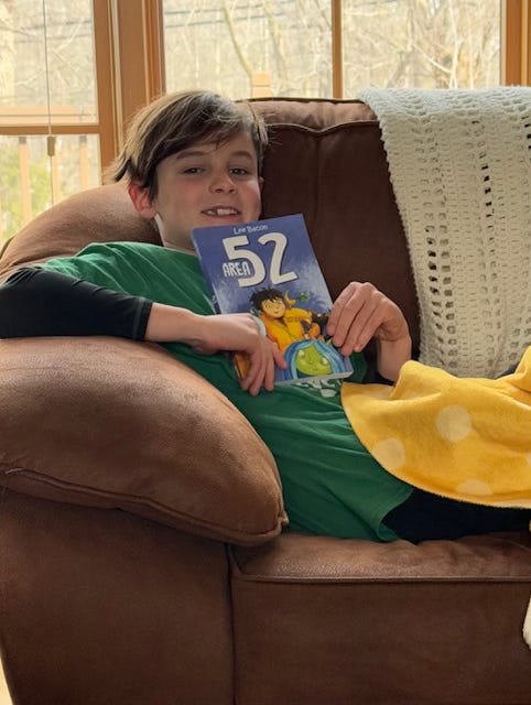 We have a special guest for this week’s book review. Our neighbor and buddy Logan F. read and reviewed my friend Lee Bacon’s new childrens book, Area 52. Logan read it in two days and loved it. His only request was that he gets to read the sequel on his kindle 😂. When I asked him what other books he’s read that it reminded him of he said, “the Harry Potter books.” High praise indeed! If you have kids, or have family or friends with young kids…get them this book here.