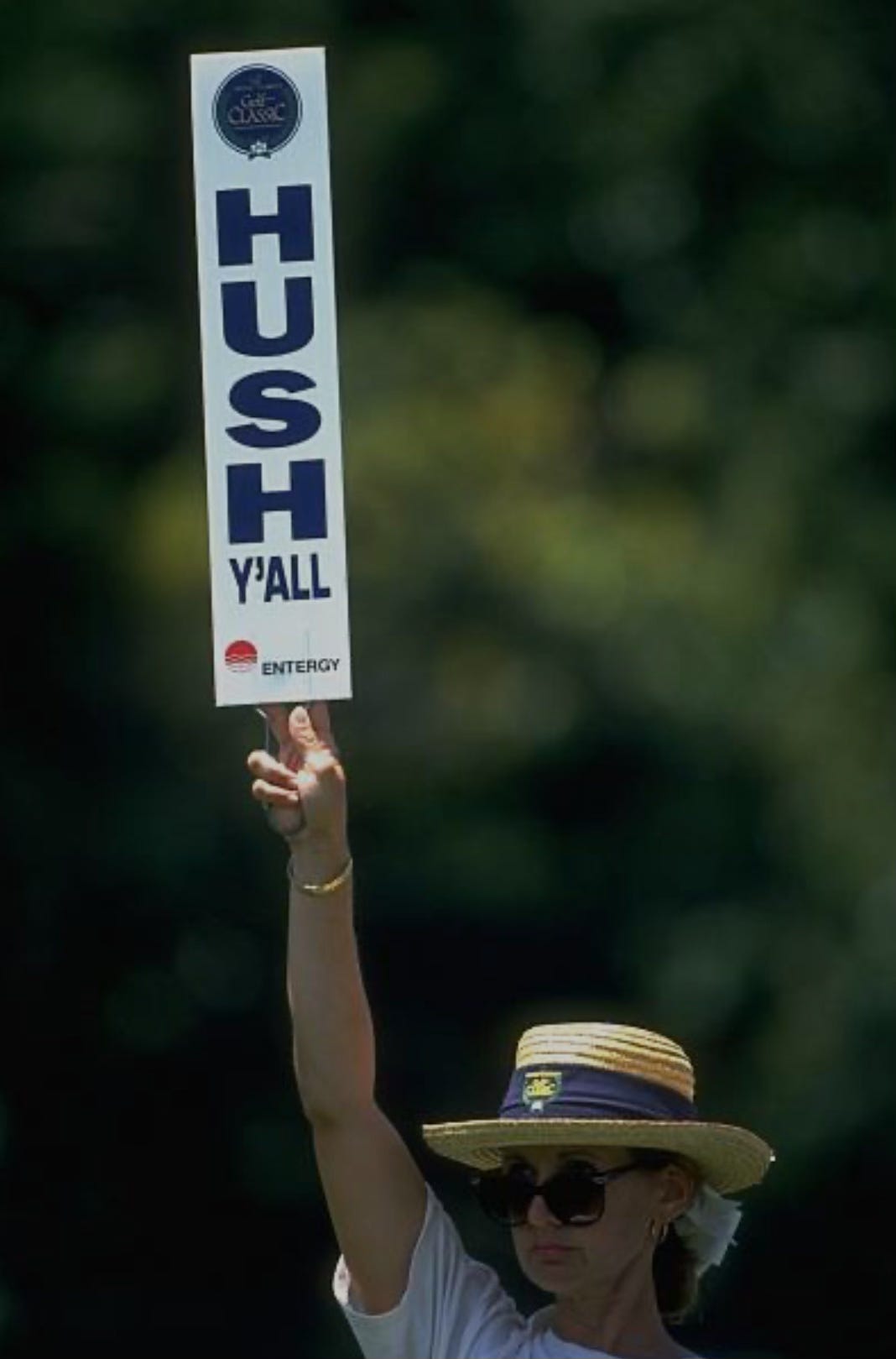 Either stand with your hands in the air facing the crowd to keep them quiet during a golf shot, or stand on the tee with paddles that you wave showing which direction the golf ball had been hit. How on Earth could it take two hours to train for that?