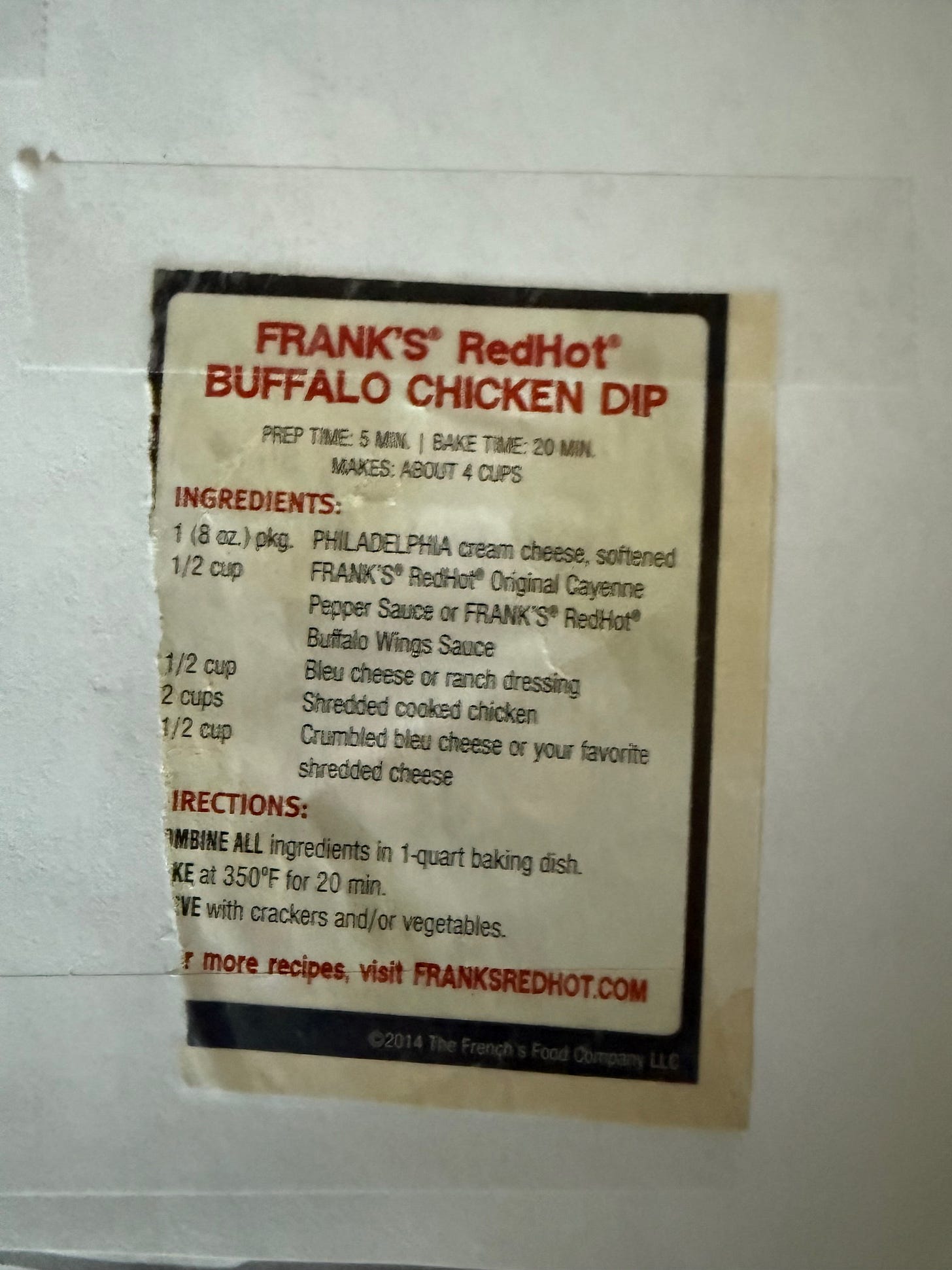 Food of the week: I’m making buffalo chicken dip for a party this weekend. Here is the recipe I’ve been using for the past 20 or so years.