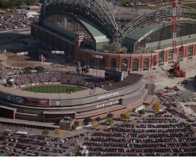 County Stadium sat mostly empty until Bud Selig was able to procure the rights to the fledgling Seattle Pilots franchise, bring them to Milwaukee, and rename them the Brewers in time for the 1970 MLB season. The Brewers (and Packers from time to time) played there until the opening of Miller Park in 2001. (A few years ago they changed the name of Miller Park to American Family Field, but we Wisconsinites refuse to call it that.)