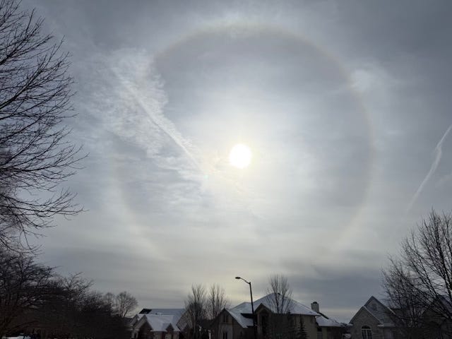 A few weeks ago I posted a picture of a sun dog I spotted while driving. Just saw an even bigger one the other day. Close to half a century of never seeing one and now I’ve seen two in the span of a month!