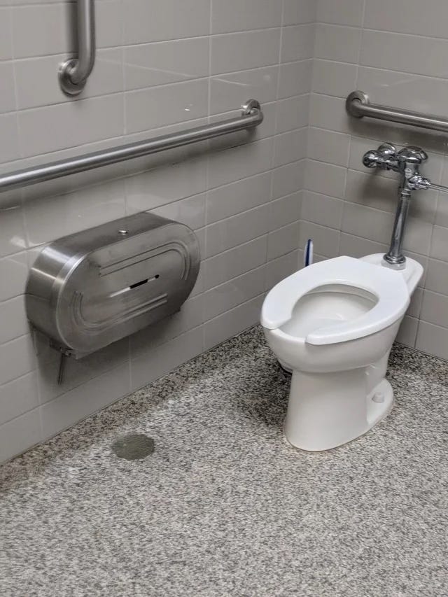 Why are public bathroom toilet paper dispensers so low to the ground? I didn’t believe in lizard people until trying to wipe at a 7-Eleven years ago. There’s no way humans designed its height placement. That goes for public bathrooms everywhere. Eye-level scum bags!