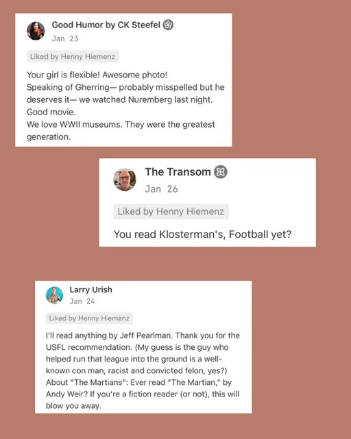 Thanks to everyone for reading and commenting last week! Especially Carissa for the movie rec, and Larry Urish and Sean from The Transom for the excellent book recs: