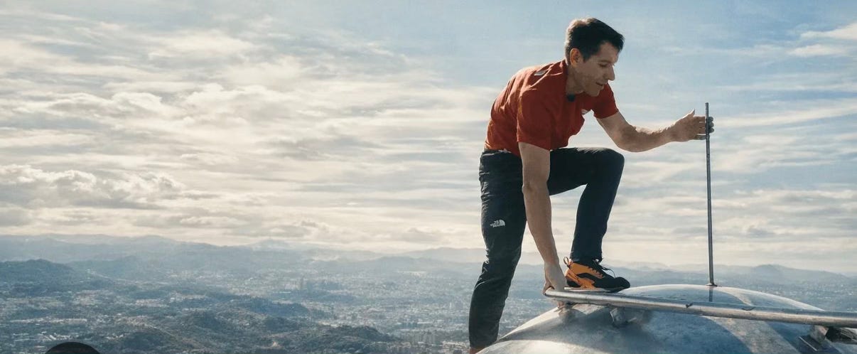 After scrolling through YouTube TV and finding nothing, I opened Netflix. The first thing I saw was an ad for “Skyscraper, LIVE,” featuring a photo of Honnold. These days, there are very few things that stop me in my tracks in terms of content. This was one of them.