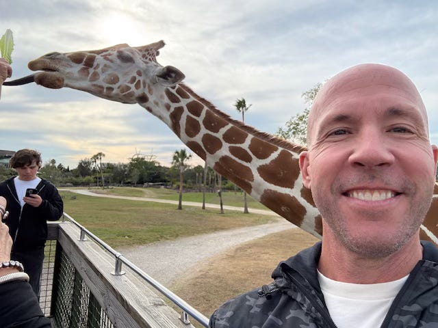 How it ended (pre & post the giraffe licking my face)….