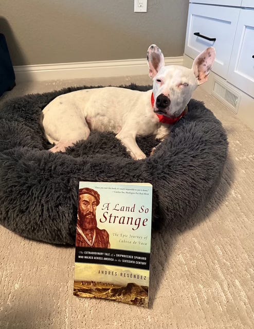 You see, the book is about the first Spanish explorers who landed in Florida (basically, the first non-Native Americans to set foot there). And the word ‘landed’ is generous, as they were actually marooned. Initially heading west from the Caribeean, they were en route to Mexico when strong Gulf winds pushed them north and east. They thought they had landed north of their intended landing spot in Mexico, but still in Mexico. In reality, they had landed in what is now Tampa Bay.