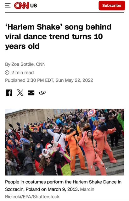 These days, something goes viral for 24 hours, tops. A few weeks ago Linda Perryâs old one-hit wonder âWhatâs Upâ went viral when it was mashed-up with a Nicki Minaj song and a stupid little dance. Within a day or so literally everyone, everywhere was making their own video of it.