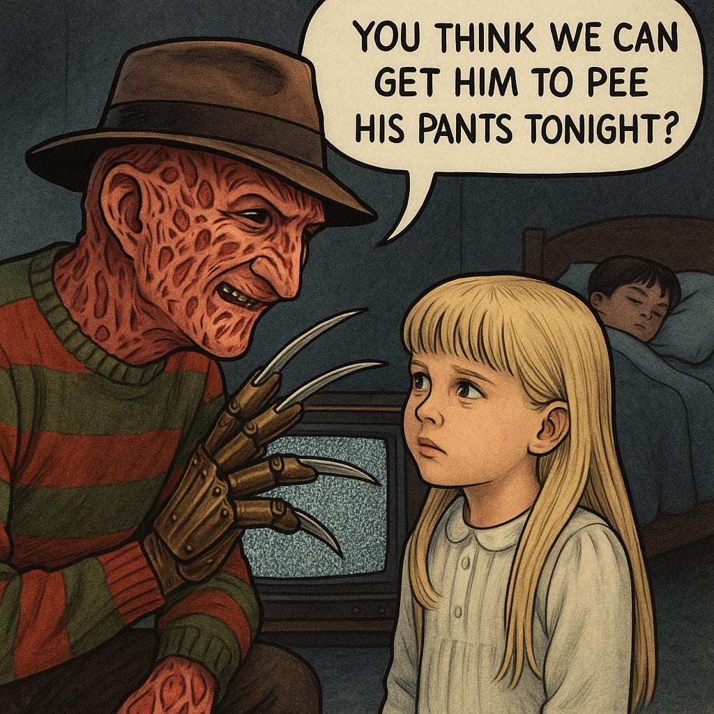 A year later I was 11. So, when A Nightmare on Elm Street came out on VHS, it was perfectly natural to show me a film about a disfigured demon who terrorized and brutally murdered a bunch of teenagers.